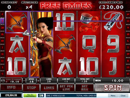 The Elektra slot machine is a 5 reel 20 payline masterpiece that features a fighting theme based game and in the bonus round you actualy get to choose the weapon you want to win in battle and during the battle you earn your cash prize. When you get to this bonus round you can get up to 14 free spins but on average it is most likely you will get 10. They also pay out at a decent 2x multiplier which gives you a chance to really clean up the cash.