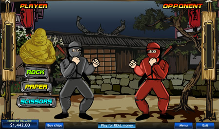 Rock. Paper. Scissors. Yep. You have three round to choose either rock, paper or scissors. If you beat your opponent then your win goes up. If you lose then it stays the same until you have played all three rounds of this deadly martial art. At the end of the bonus round your total winnings are added to your balance.