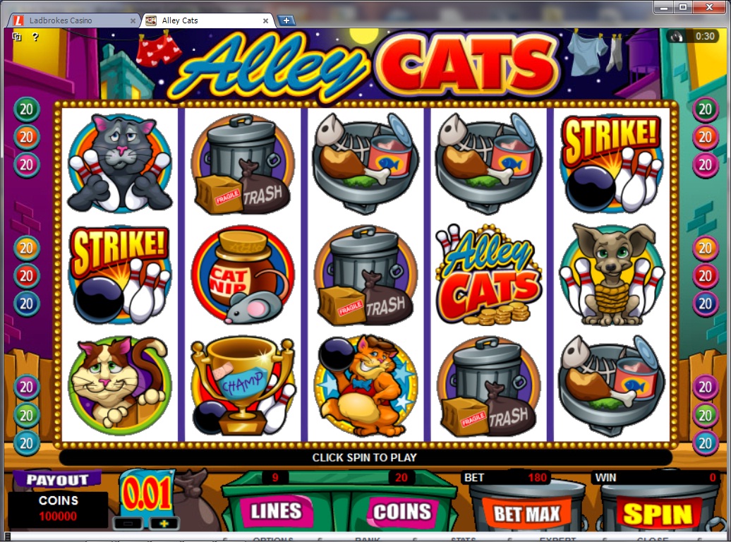 | Alley Cats Number of Reels: 5 Number of WinLines: 25 Extra Features: Wild Symbol, Scatter Wins, Bonus Rounds, Free Spins |