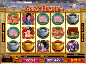 Like many video slot games from Microgaming, Asian Beauty will allow you to choose a coin denomination that will suit the budget. This is a great option and I find that increasing bets during a winning streak can really pay off. The smallest wager is $0.01 per line and this can be boosted to $0.50. The maximum bet on Asian Beauty is 300 coins per spin. While this game is primarily considered to be a penny machine, I find that playing it for higher denominations can help add a lot of cash to the bankroll quite rapidly.