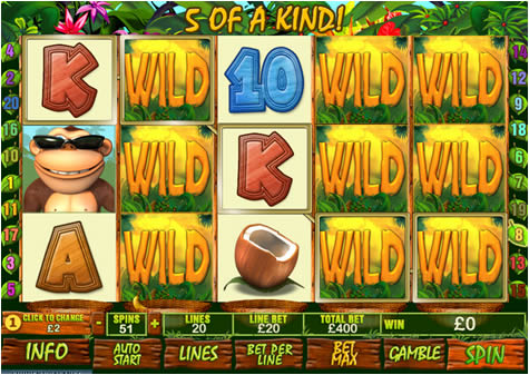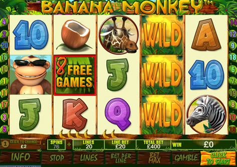 | Banana Monkey Number of Reels: 5 Number of WinLines: 20 Extra Features: Scatter Wins, Wild Symbol,Stacked Wild Symbol, Free Spins, Skill Based Bonus Round. |
