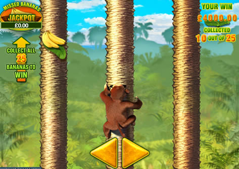 If you miss any bananas during the bonus round then these are added to a pot. These will be held there until you trigger the bonus round again. If you manage to collect all 25 bananas this time, then the bananas that you missed the previous time and that are stored in the separate pot are also added to your win, meaning more money. However, unless you have no motor skills at all (and if thats the case you wouldnt even have been able to turn your computer on, let alone play this game) the collecting of the bananas is ridiculously simple so you should be able to collect all the bananas each time. Still, having that form of progressive bonus is an interesting little innovation.