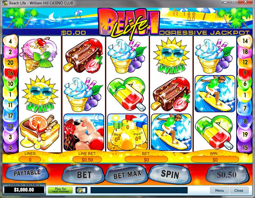 | Beach Life Number of Reels: 5 Number of WinLines: 20 Extra Features: Bonus Rounds, Scatter Lines, Jackpot Coins |