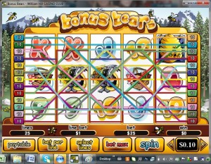 Bonus Bears is an incredible creation from the folks at Playtech. This video slot offers many opportunities to win huge payouts and offers ongoing entertainment the whole time you are playing. With 25 paylines, you will find that the game offers frequent payouts that can be pretty impressive. One of the main highlights I enjoyed with this game is the fact that it is a penny machine that will accept wagers that surpass $1000 per spin. There are very few penny machines that offer this type of wagering limit, making this one of the most attractive games for high rollers in online casinos.