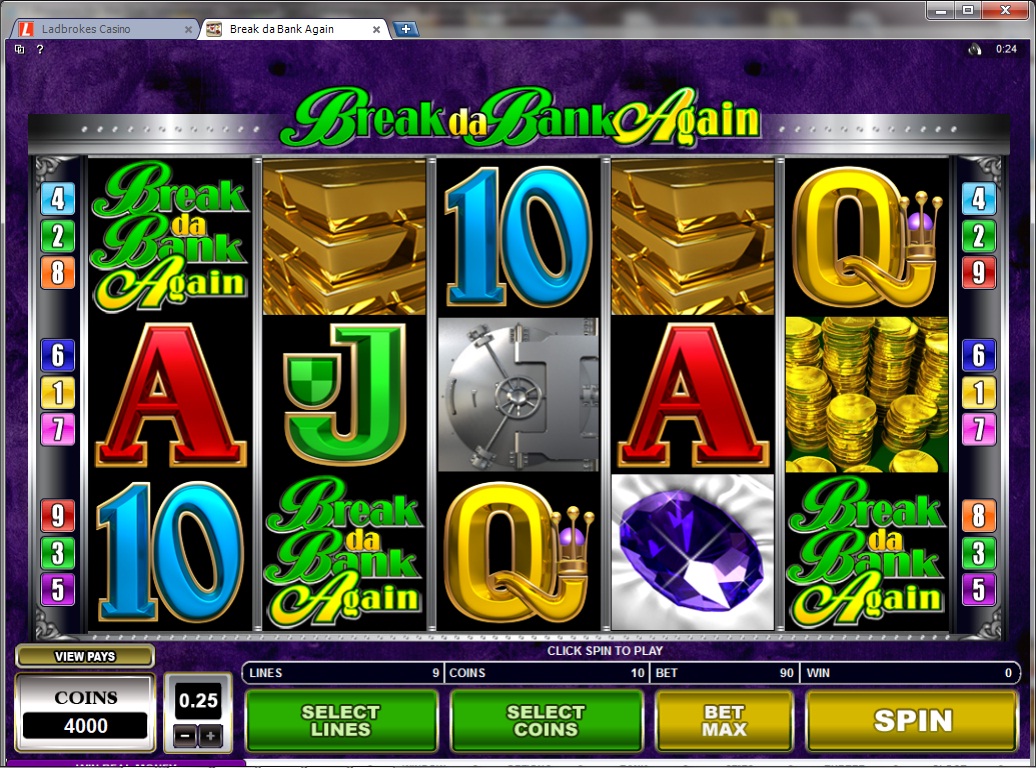| Break Da Bank Again Number of Reels: 5 Number of WinLines: 9 Extra Features: Bonus Rounds, Scatter Lines, Jackpot Coins |