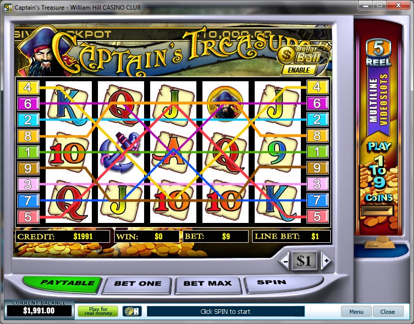 | Captains Treasure Number of Reels: 5 Number of WinLines: 9 Extra Features: Bonus Rounds |