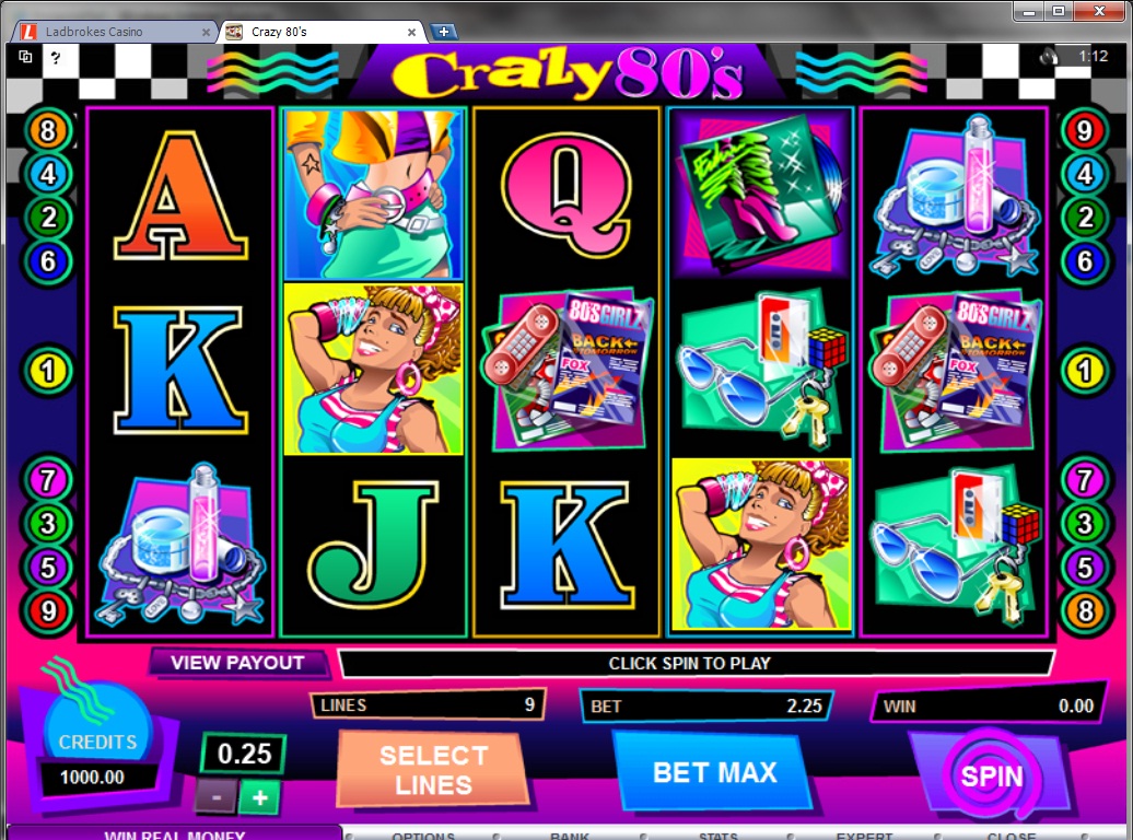Playing online slots has never been more exciting and I was lucky to find an amazing 9 payline slot game from Microgaming. Crazy 80s slot is a great game that offers a super theme. Since I always enjoy anything that is based from the 80s, this game was a perfect selection when I visited the online casino. Playing Crazy 80s will result in some impressive payouts and the game offers some nice features that can help generate additional payouts. This game reminds me of Thunderstruck, also from Microgaming. Since both games have 9 paylines and a rewarding bonus round, they are great choices for players who have small budgets or simply enjoy a 9 payline game.