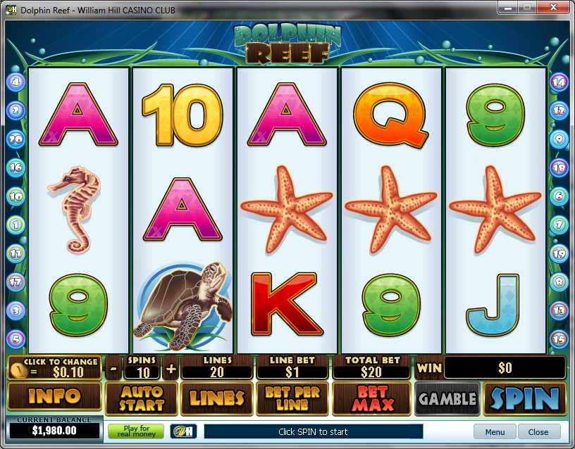 | Dolphin Reef Number of Reels: 5 Number of WinLines: 20 Extra Features: Bonus Rounds, Scatter Lines, Jackpot Coins |