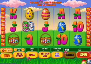 There is one more reel symbol to look out for and that is the Easter Bunny symbol. This acts as a Wild symbol and substitutes for all the other normal symbols on the reels. This symbol can help you generate some good wins because it can be used to make up multiple wins on different win lines – unlike normal “pub” fruities that only pay the highest win on any spin, online casino slot games pay out on all the wins that can be had during the round.