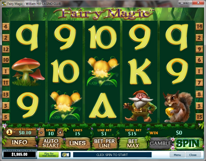 I love a slot game that offers a visual appeal and that is exactly what I found when playing Fairy Magic. This online slot is from Playtech and is played on 15 paylines. With an amazing magical theme, the game uses quality graphics and animations. This is what I found most attractive while playing. At certain times, some of the symbols will become animated, such as when the Fairy waves a wand when winning combination appears. Aside from phenomenal graphics, the game has soothing sound effects and background music, making this game a sheer pleasure to play. With 32 winning combinations, there is always the chance to collect a large payout. The game offers some interesting symbols, including a Unicorn, Fairy, gold nut, flowers, mushroom, tree house and standard playing card symbols.