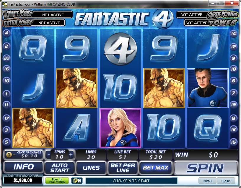| Fantastic Four Number of Reels: 5 Number of WinLines: 20 Extra Features: Bonus Rounds, Jackpot Big Prize Payouts |