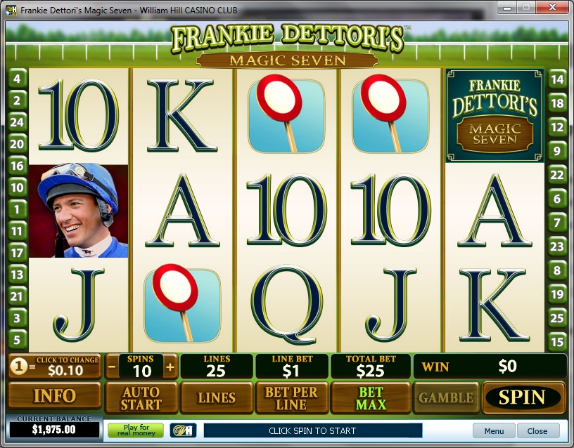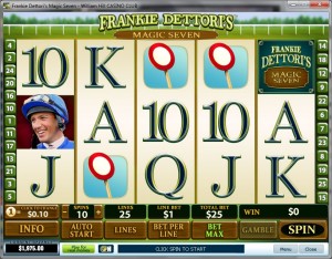 When looking for a high quality online slot game, I have found Playtech to offer some of the best titles available anywhere. If you enjoy unique video slots that feature amazing payouts, a great theme and spectacular bonuses, Frankie Dettoris Magic Seven is a game that should be considered. I have enjoyed playing this game in online casinos and will continue to come back for ongoing slot action. This game is based on the famous jockey Frankie Dettoris. With a fantastic horse racing themes, you will surely enjoy the vivid graphics and realistic sound effects that Playtech has incorporated into this game.