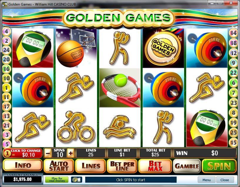 | Golden Games Number of Reels: 5 Number of WinLines: 25 Extra Features: Bonus Rounds, Scatter Lines, Progressive Jackpot |