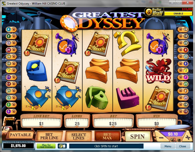 | Greatest Odyssey Number of Reels: 5 Number of WinLines: 25 Extra Features: Bonus Rounds, Scatter Lines, Progressive Jackpot |