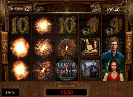 Immortal Romance is massive. Its designed to fully immerse you in the gameplay and the graphics and sound are faultless and totally enhance the gaming experience. This is a game for the kind of player who likes to get stuck - after all you will need to hit the Free Spins round 15 times before you unlock the last Free Spins Bonus Round. But it is worth persevering with. Immortal Romance is one of the best online slot games around!