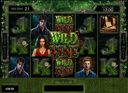 However the main feature of Sarahs Bonus in Immortal Romance is the Wild Vine Bonus. If the Wild Vine symbol spins in on Reel three, then it will reach out to some of the other reels randomly and turn the current reel symbol into additional Wild symbols – and we all know that they more Wild symbols that are on the reel the more money you will win!