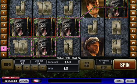 You start the game in Jungle Mode and play through as normal, matching symbols on the winlines to win money. Activating the Skull Island Bonus will then change the game so that you are playing in Big City Mode. You’ll start playing in Big City Mode after the Skull Island Bonus has finished and you will continue to play in Big City Mode until you activate the City Tower Bonus, and after completion of that bonus round you will then return to Jungle Mode. Sounds confusing? You’ll get the hang of it quickly enough!