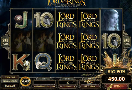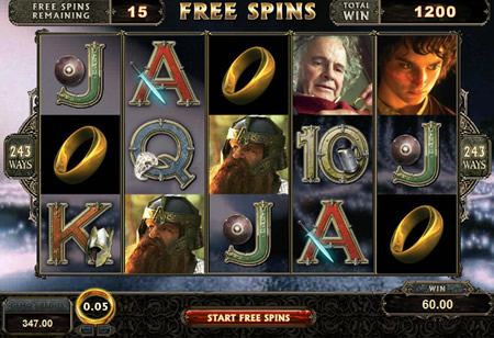 | Lord of the Rings Number of Reels: 5 Number of WinLines: 243 Extra Features: Free Spins, Stacked Wild Symbols, Expanding Wild Symbols, Scatter Wins. |