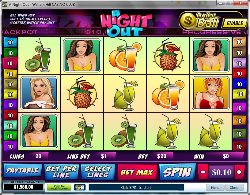 | A Night Out Number of Reels: 5 Number of WinLines: 20 Extra Features: Bonus Rounds, Scatter Lines, Jackpot Coins |