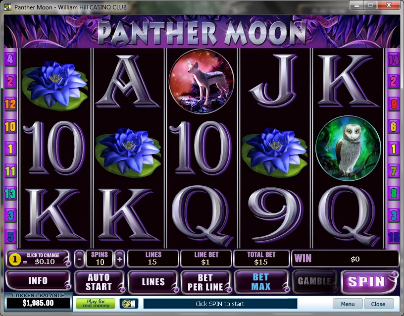 | Panther Moon Number of Reels: 5 Number of WinLines: 15 Extra Features: Bonus Rounds, Jackpot Coins |