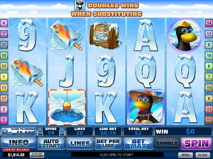 Pressing the Spin buttons starts the game, and as is normal the idea is to match the same symbol on a winline to generate your money. Unusually for an online slot game, Penguin Vacation has 4 different reel symbols that allow you to win if you only get 2 of a kind – most games mean that you have to get at least three of a kind.