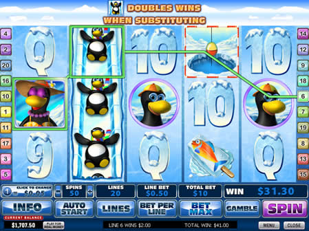 | Penguin Vacation Number of Reels: 5 Number of WinLines: 20 Extra Features: Scatter Wins, Wild Symbol,Stacked Wild Symbol, Free Spins, Skill Based Bonus Round |
