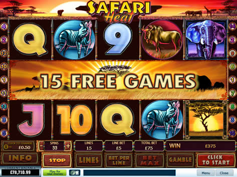 | Safari Heat Number of Reels: 5 Number of WinLines: 15 Extra Features: Free Spins, Bonus Round, Scatter Wins, Wild Symbol |