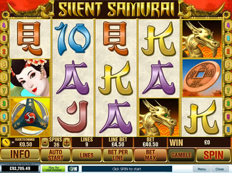 | Silent Samurai Number of Reels: 5 Number of WinLines: 9 Extra Features: Free Spins, Bonus Round, Wild Symbol, Scatter Wins |