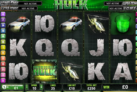 | The Incredible Hulk Number of Reels: 5 Number of WinLines: 25 Extra Features: Bonus Round, Free Spins, Scatter Wins, Wild Symbol |