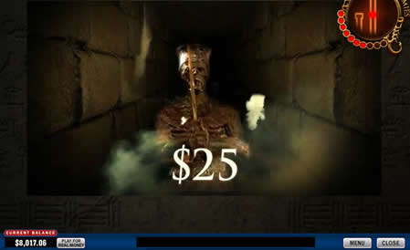 The idea of this round is to move through the tunnels so that you can find Mummies and kill them. When prompted you choose which direction to take. Keep moving until you find the Mummies and dispatch them in return for a nice financial reward. There are 10 Mummies to find and kill. If you find yourself in a dead end though beware – the Mummies will ambush you and your bonus round will be over.