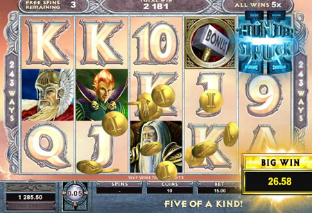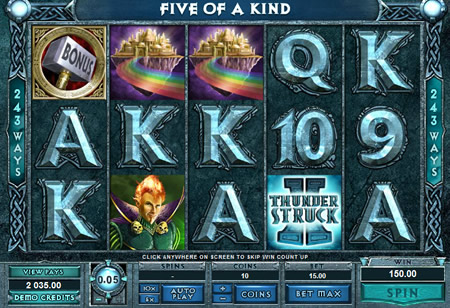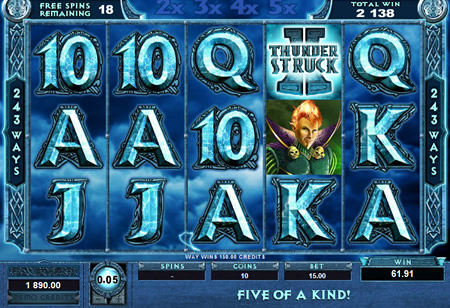 | Thunderstruck 2 Number of Reels: 5 Number of WinLines: 243 Extra Features: Free Spins, Wild Symbols, Bonus Rounds, Random Feature, Scatter Wins |