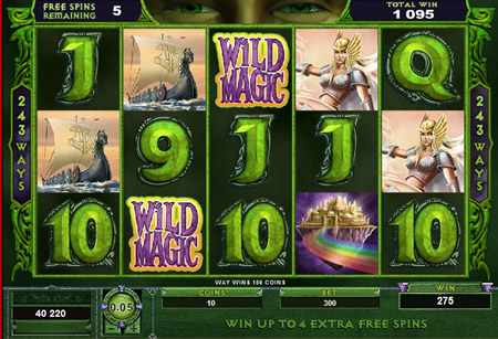 Loki also has ‘Wild Magic’. This symbol appears in the middle reel and if it appears during your free spins, not only does it act as a Wild Symbol, but it also reaches out and turns a random number of other reels into Wild Symbols as well, giving you the potential to earn some big multiple wins.