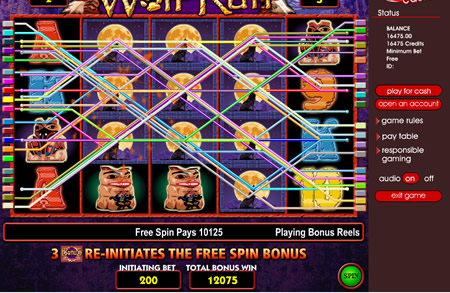 | Wolf Run Number of Reels: 5 Number of WinLines: 40 Extra Features: Free Spins, Wild Symbols, Scatter Wins. |