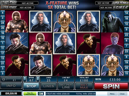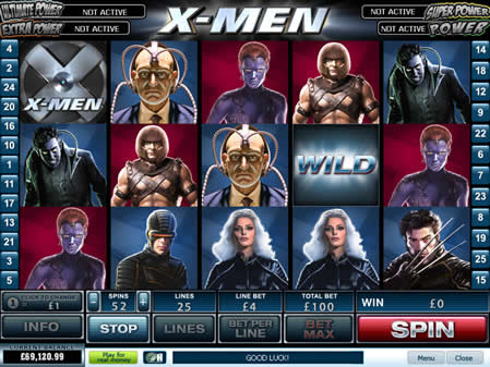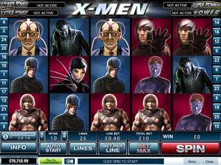 | X Men Number of Reels: 5 Number of WinLines: 25 Extra Features: Free Spins, Bonus Round, Wild Symbol, Scatter Wins |